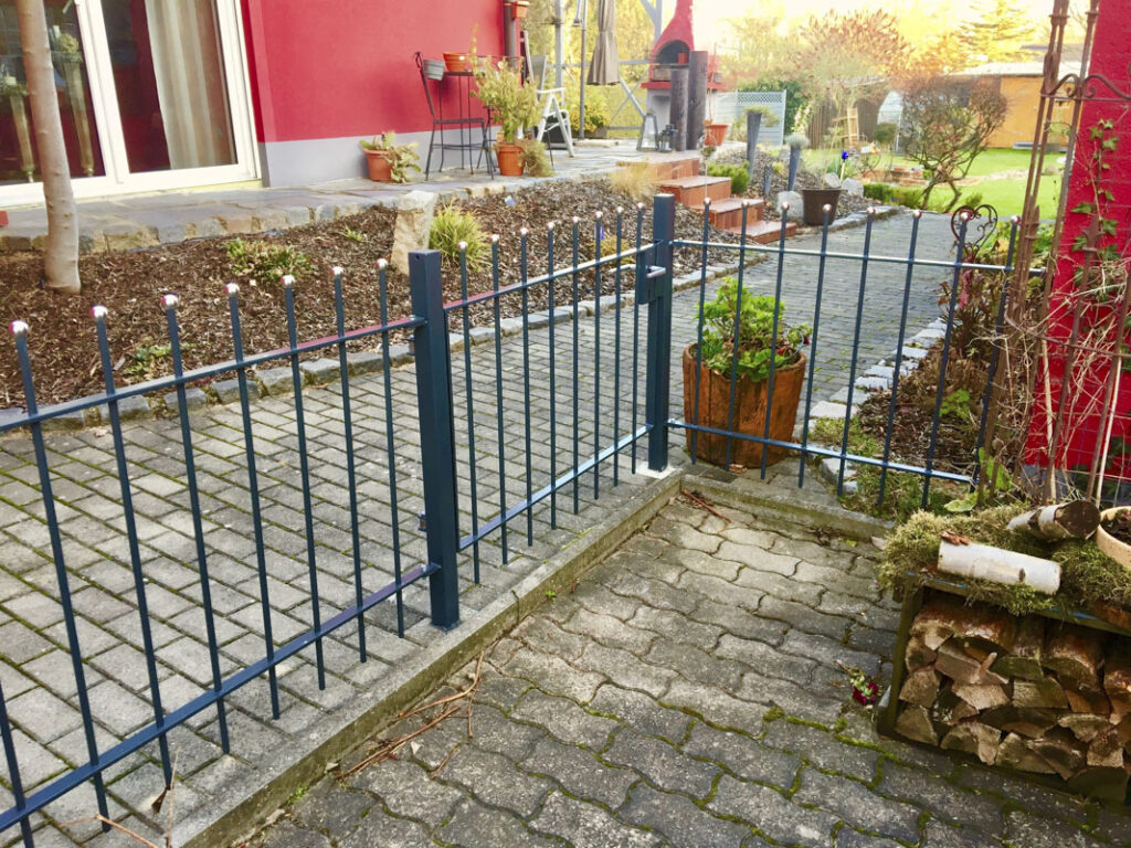 Zaun aus Stahl verzinkt und Lackiert (RAL7016) mit geschliffenen Edelstahl Kugel
