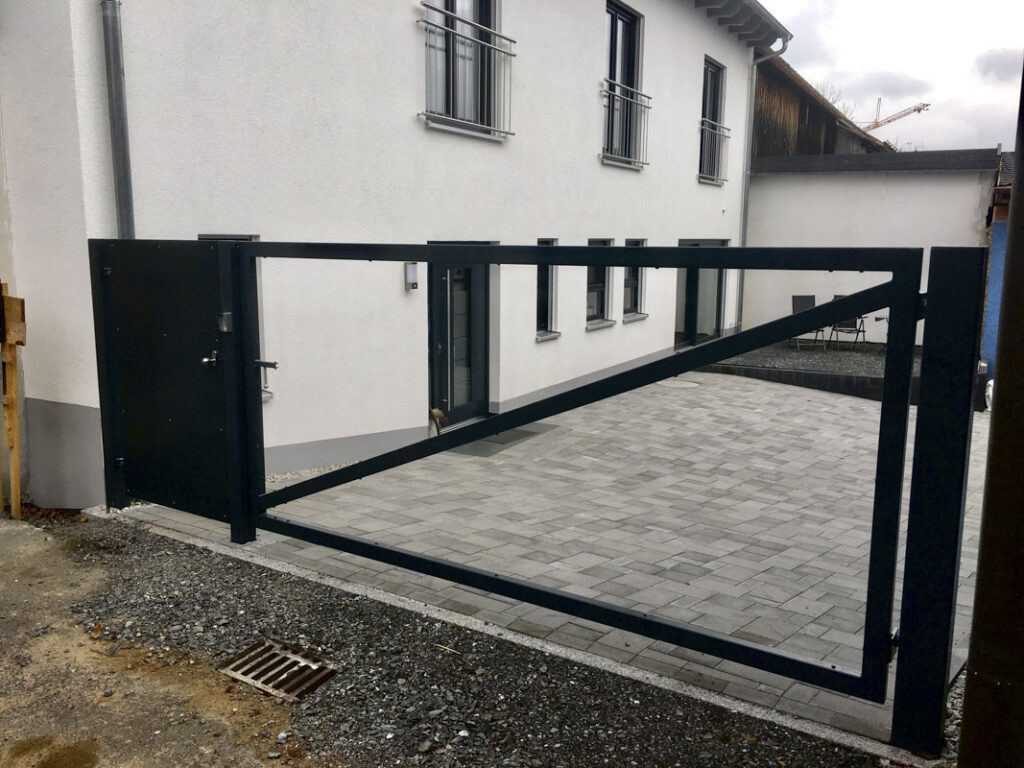 Torrahmen Anthrazit als Vorbereitung für eine Holzfüllung.